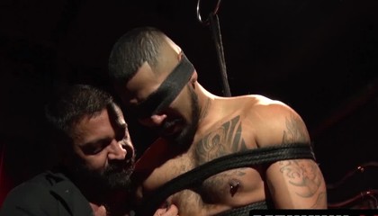 Greg Riley raw ravishes and fists Ethan Sinns in filthy rope bondage